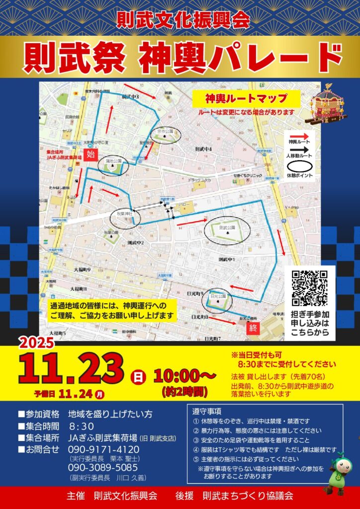 11/23 2025則武祭り「神輿パレード」担ぎ手募集!※運行ルートを追加しました