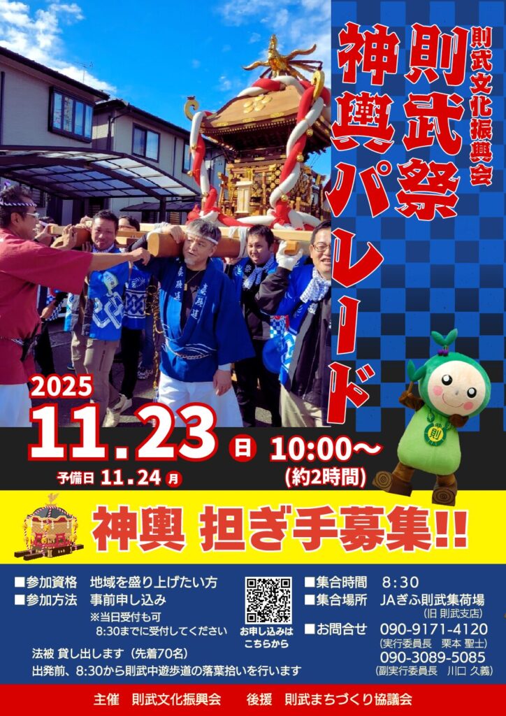 11/23 2025則武祭り「神輿パレード」担ぎ手募集!※運行ルートを追加しました